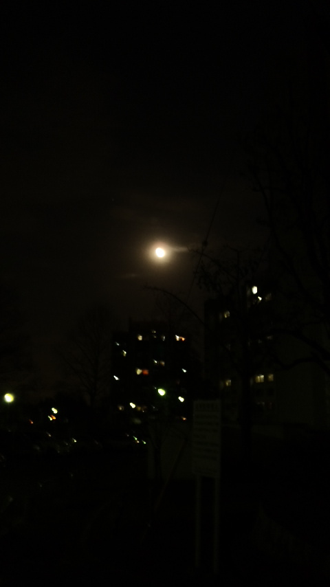 一応真ん中で光ってるのが月で下のほうで光ってるのが団地の電気。